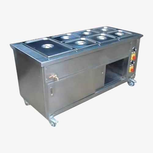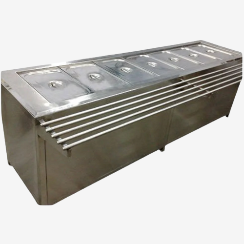 Bain Marie Counter Cold Bain Marie Display Counter Get A Quote Usage/ApplicationRestaurantMaterialStainless Steel, GlassBrandBlue StoneCounter ShapeCurvedWarranty1 YearTop WorkbenchStainless SteelHeight4-5 feet Bain Marie Counter Get A Quote Minimum Order Quantity1 PieceUsage/ApplicationRestaurant and HotelVoltage220 VMaterialStainless SteelNumber Of Wheels4Number Of Pans7Power SourceElectricShapeRectangular Stainless Steel Bain Marie Get A Quote Minimum Order Quantity1 PieceUsage/ApplicationRestaurant and HotelMaterialStainless Steel, GlassNumber Of Pans12FinishingMatt FinishingBrandBlue StoneTop WorkbenchMarble 7 Pans SS Bain Marie Get A Quote Usage/ApplicationHotel and RestaurantMaterialStainless SteelBrandBlue StoneHeight3 feetSurface FinishMatt FinishSteel GradeSS 304Number Of Pans7